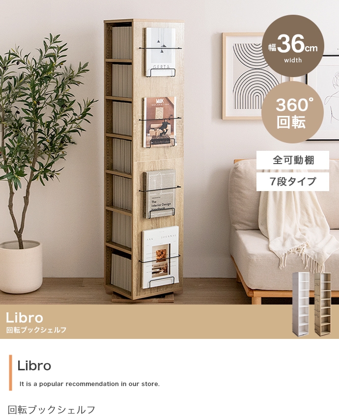 【幅36cm】Libro 回転ブックシェルフ(7段タイプ)
