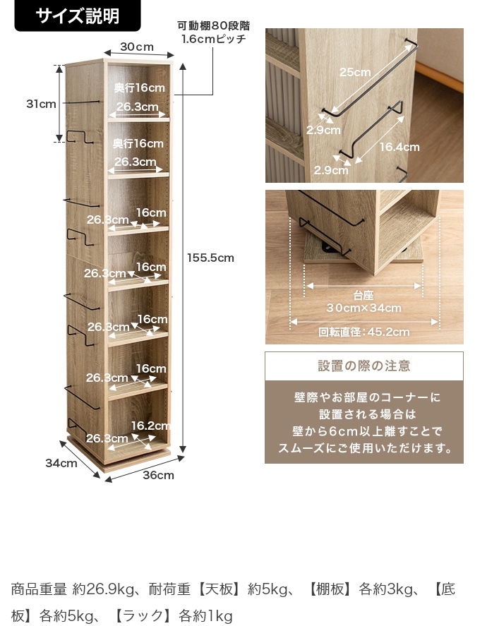 サイズ | 幅36cm×奥行34cm×高さ155.5cm |