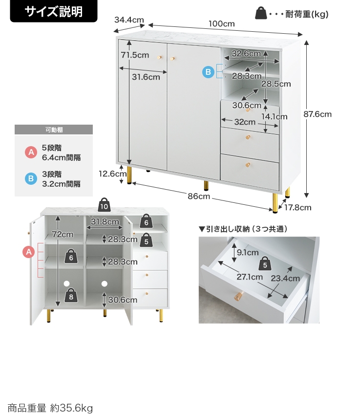サイズ | 幅100cm×奥行34.4cm×高さ87.6cm |
