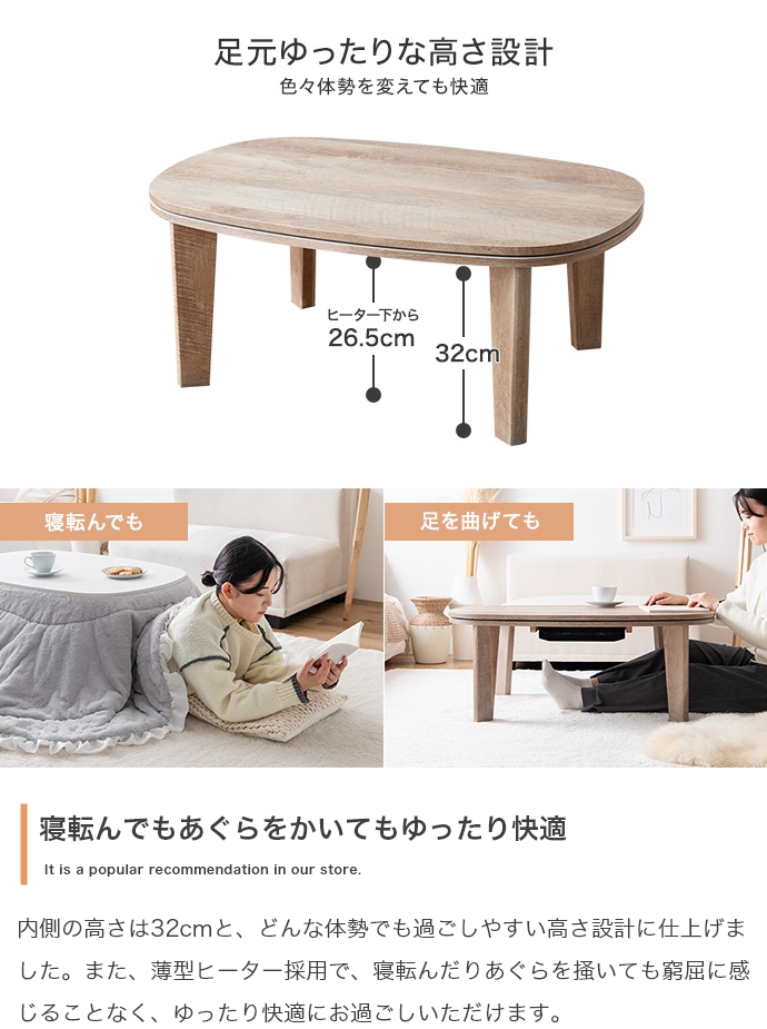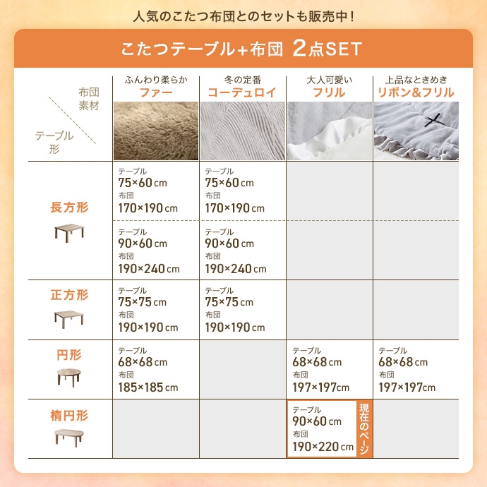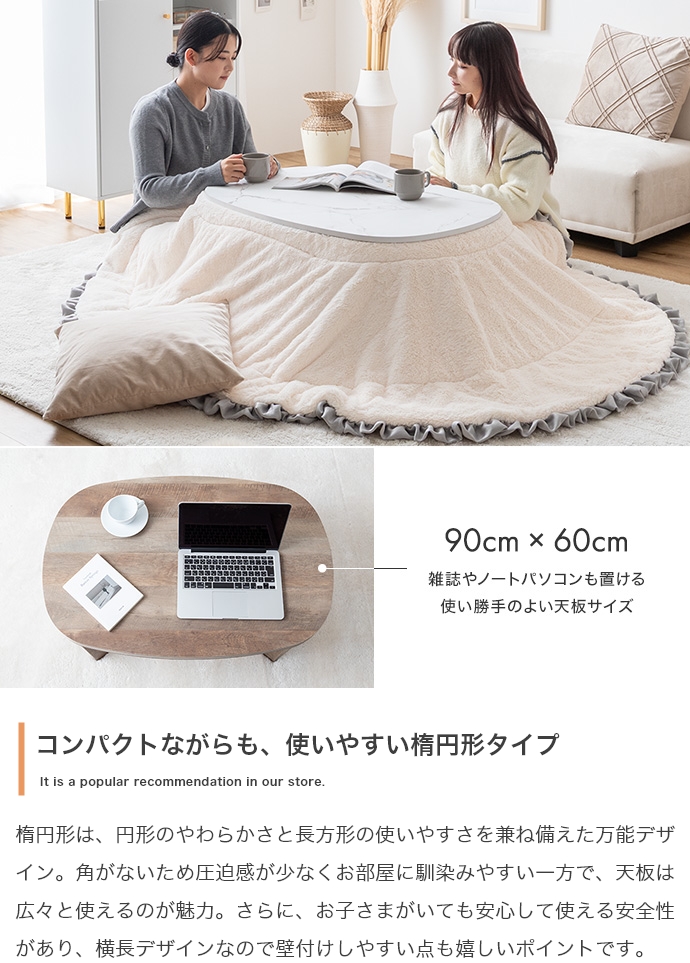 【楕円形:天板 90cm×60cm】こたつ&掛け布団2点セット