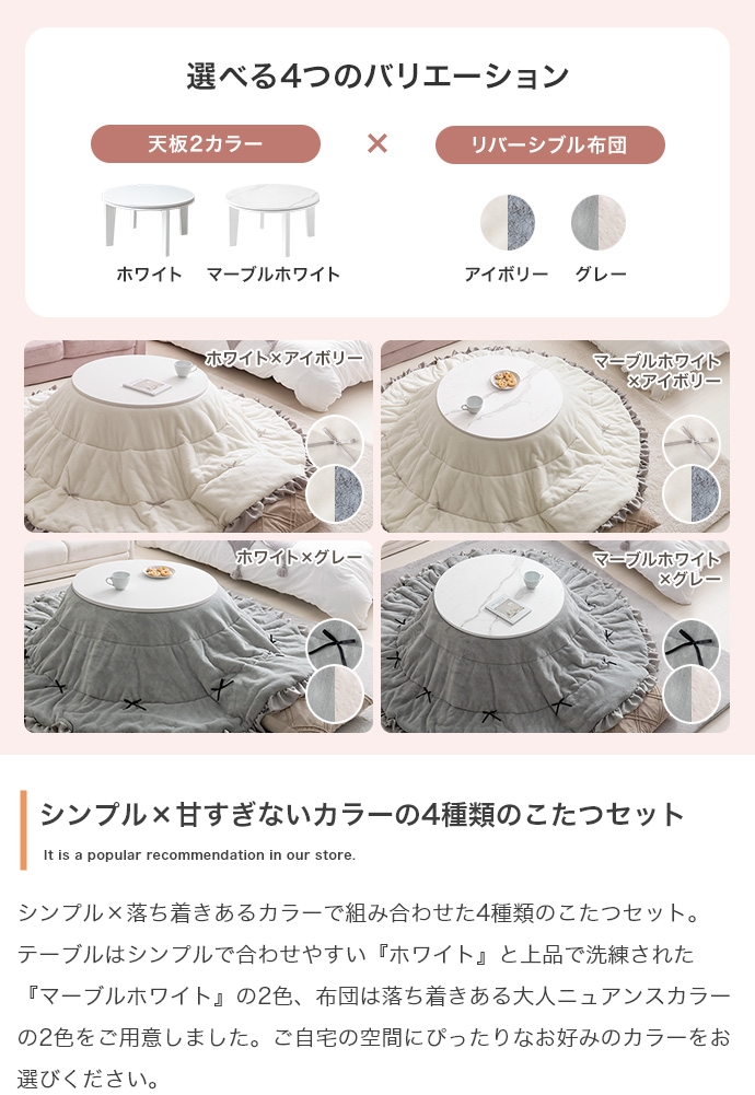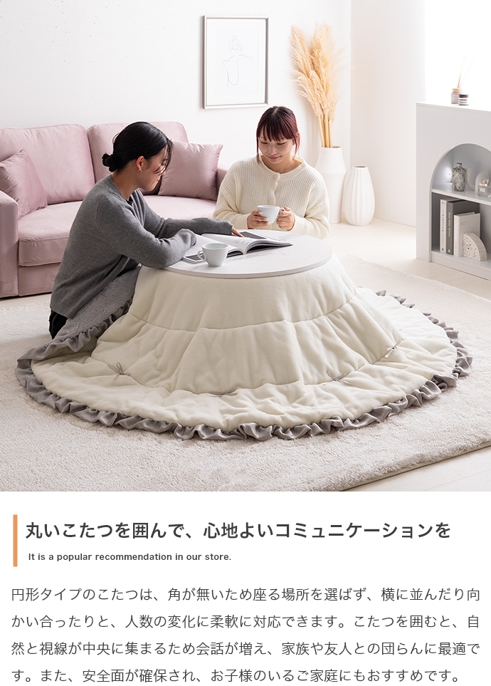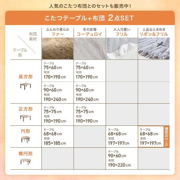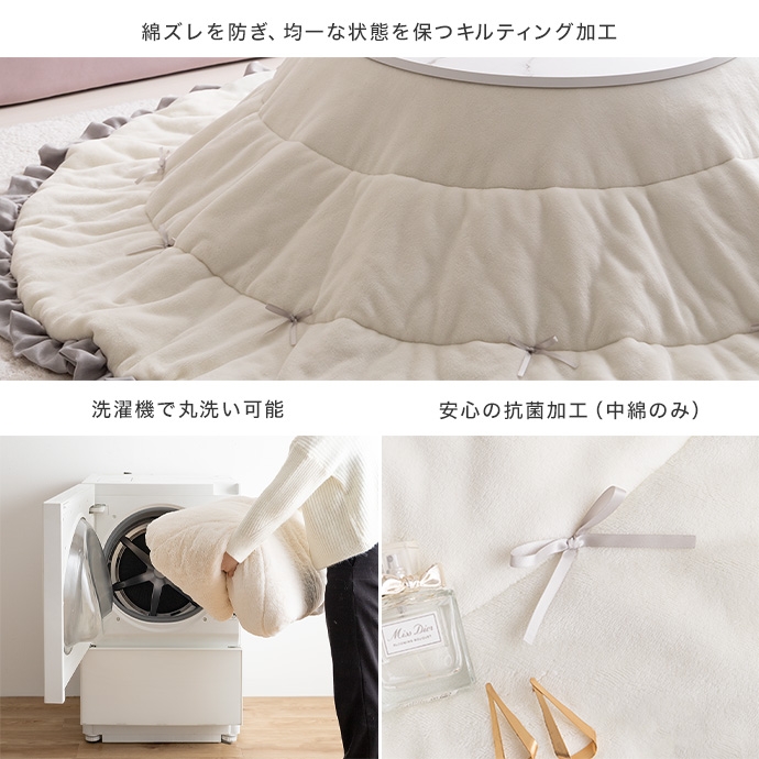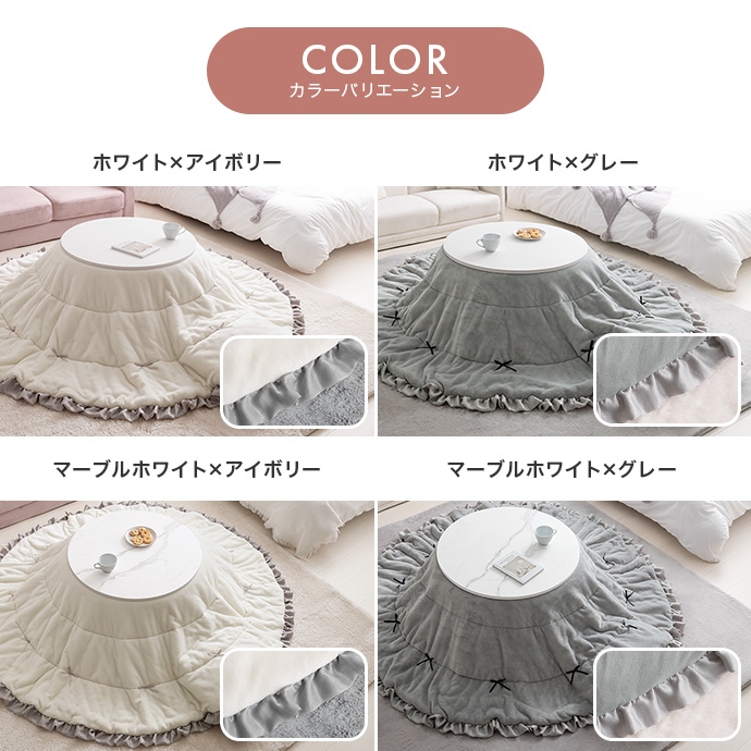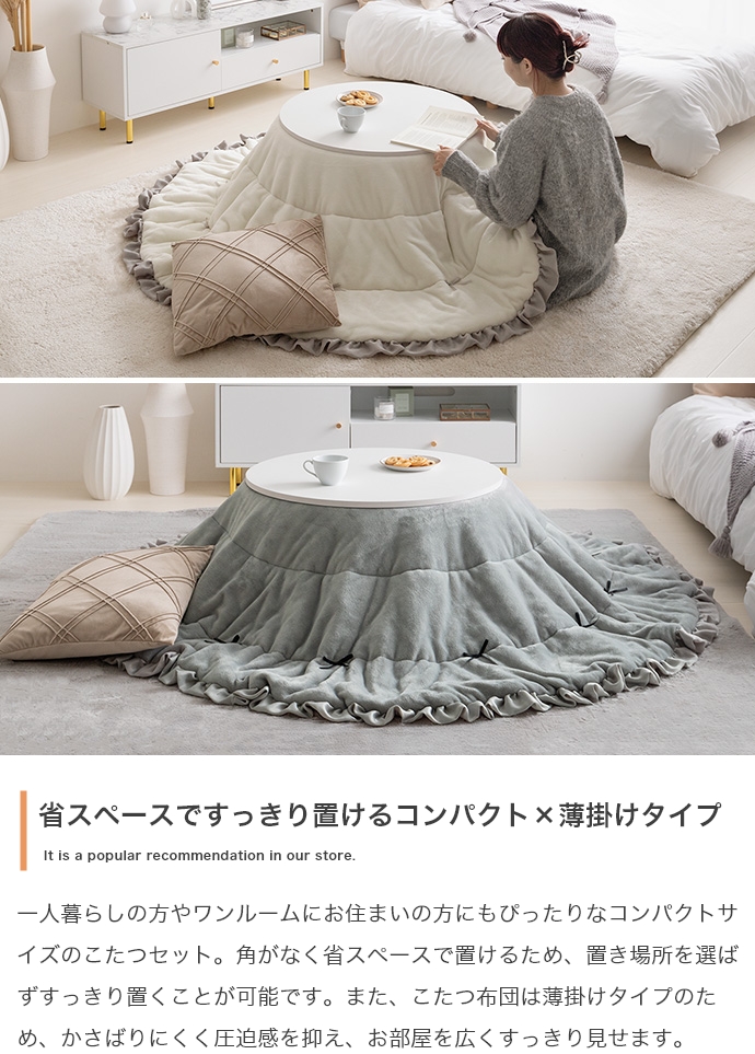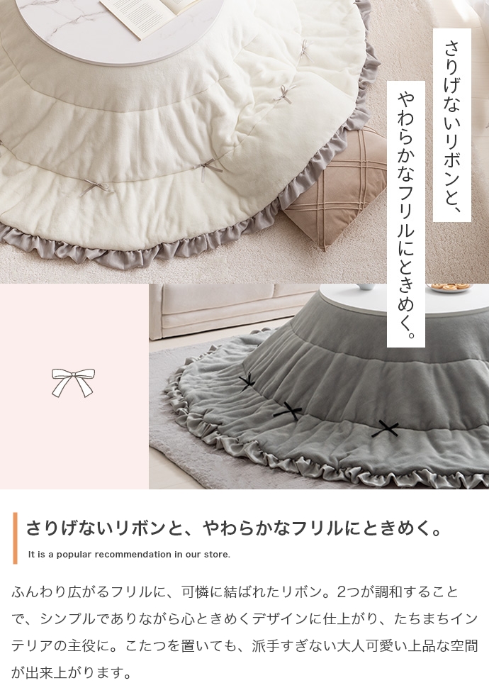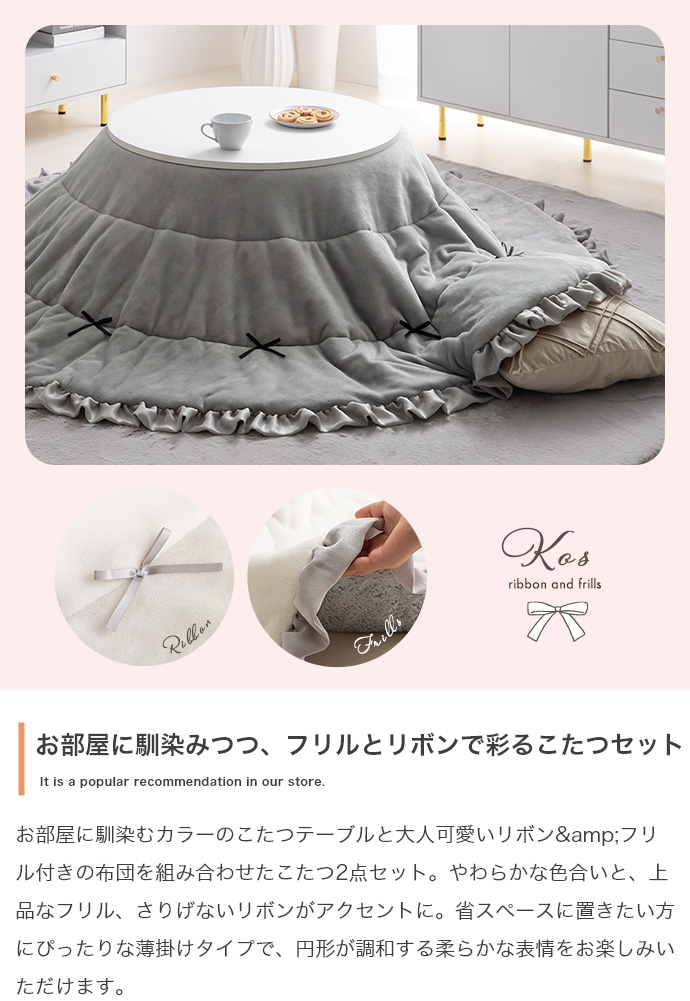 【円形:天板 68cm】こたつ&リボン・フリル付き掛け布団2点セット