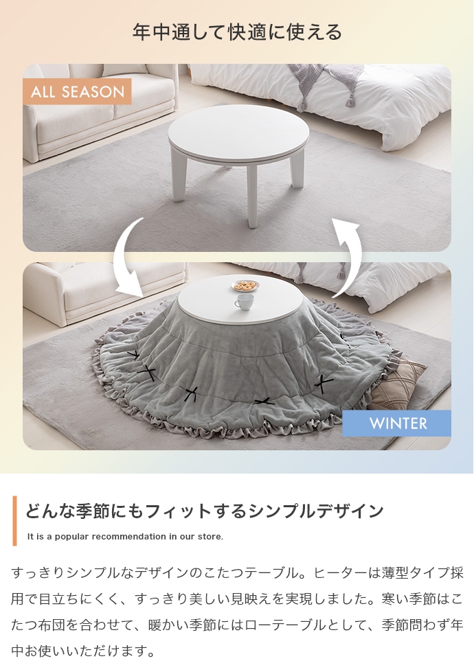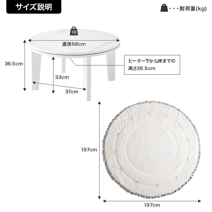 | サイズ | 【テーブル】幅68cm×奥行68cm×高さ36.5cm 【布団】197cm×197cm(フリル込み) |