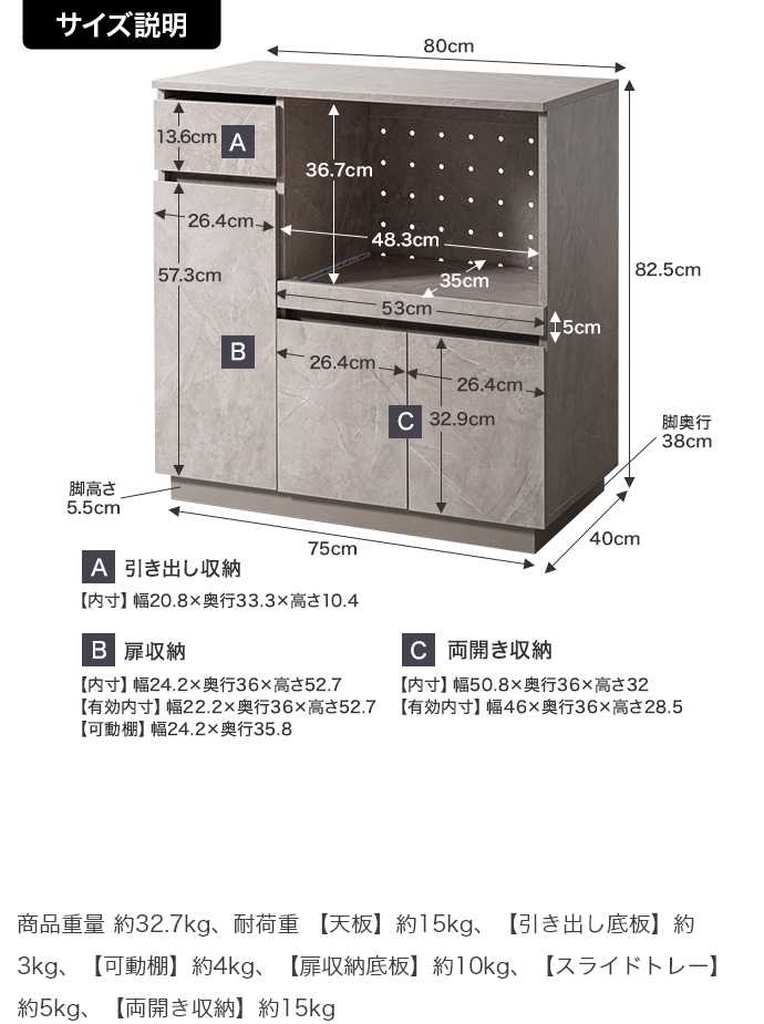 | サイズ | 幅80cm×奥行40cm×高さ82.5cm |