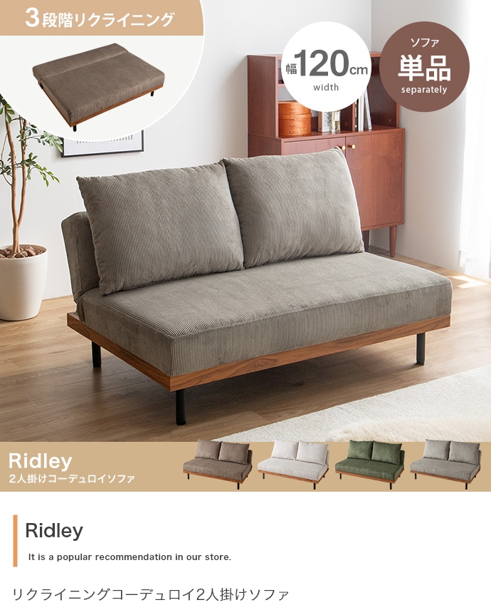 【単品】リクライニングコーデュロイ2人掛けソファ