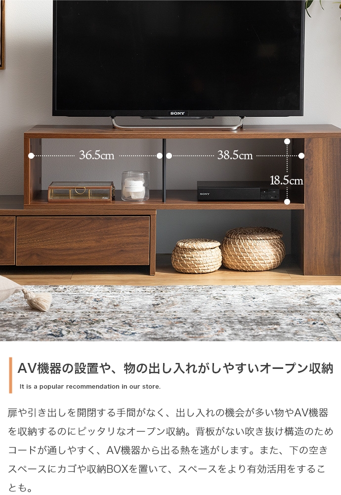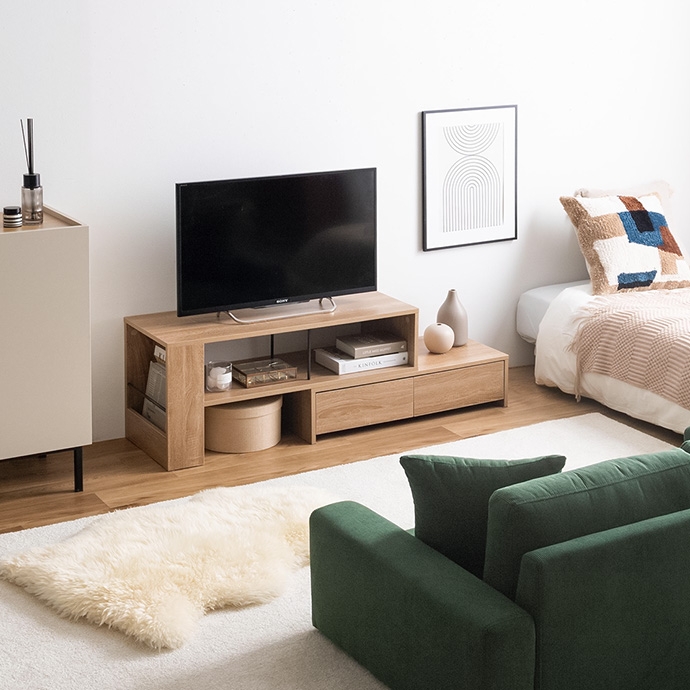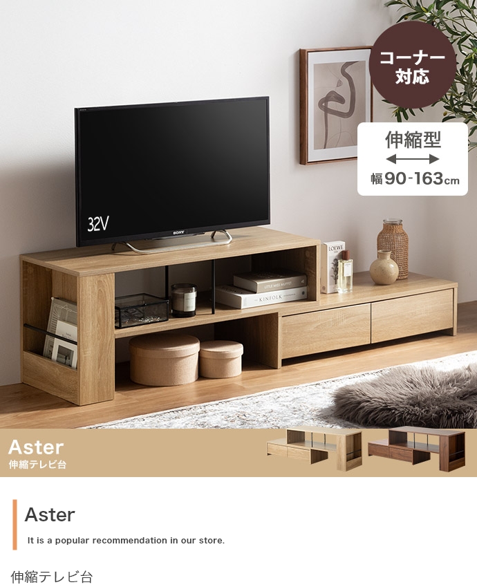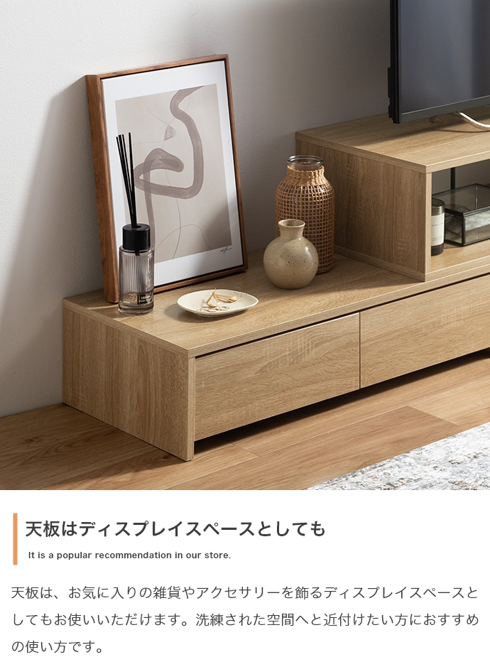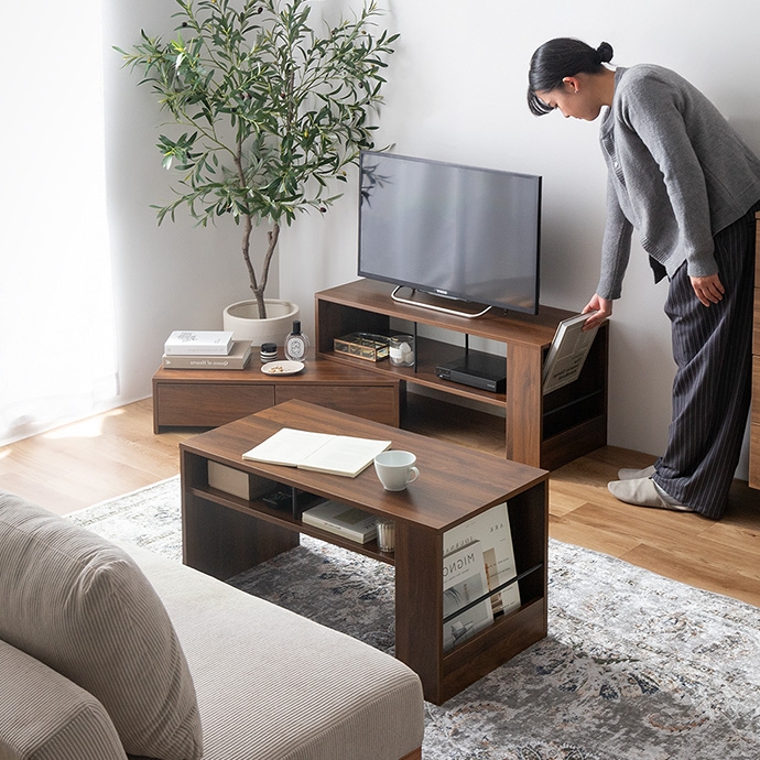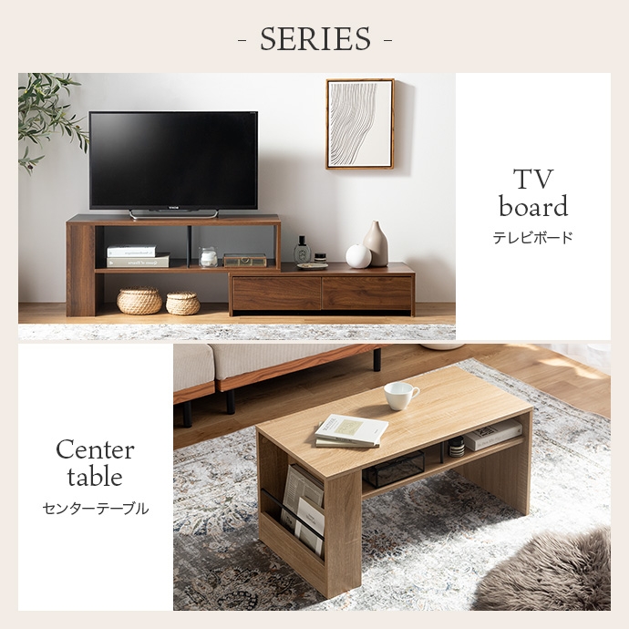 お部屋の大きさや間取りに合わせて自由自在にレイアウトできる伸縮テレビ台。セパレート式で横幅と角度の調節や左右を組み替えることもでき、お好きなスタイルを楽しむことが可能です。また、一人暮らしやワンルームにも置きやすいコンパクトデザインで、様々なお部屋に馴染みます。
