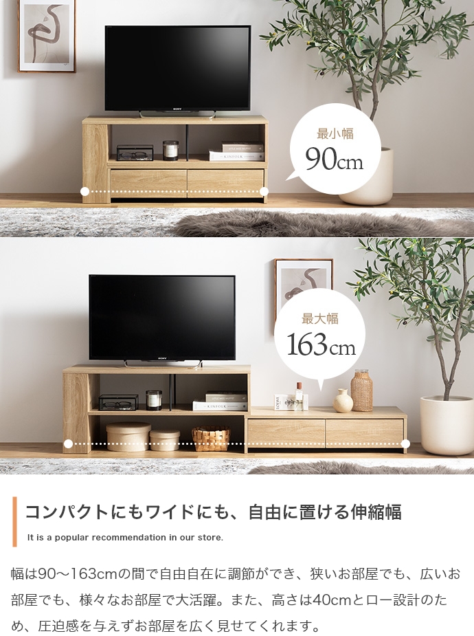 | サイズ | 幅90cm~163cm×奥行35cm×高さ40cm |