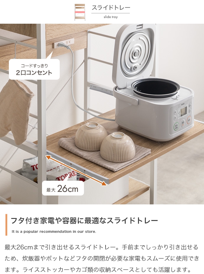 【幅60cm】コンセント付きレンジラック