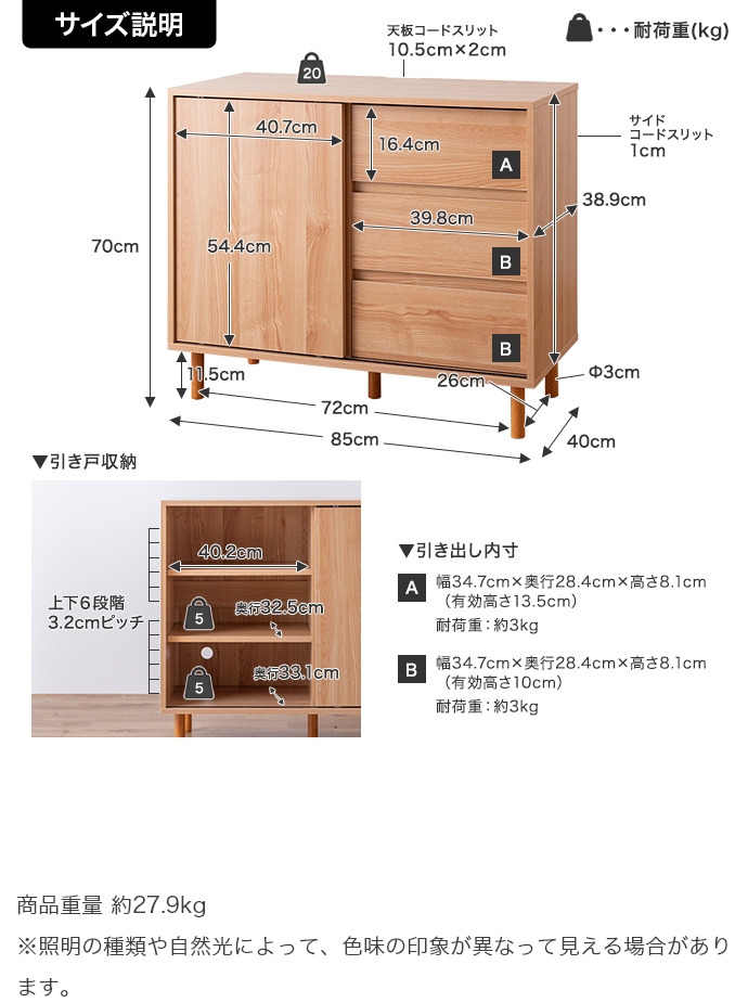| サイズ | 幅85cm×奥行40cm×高さ70cm |