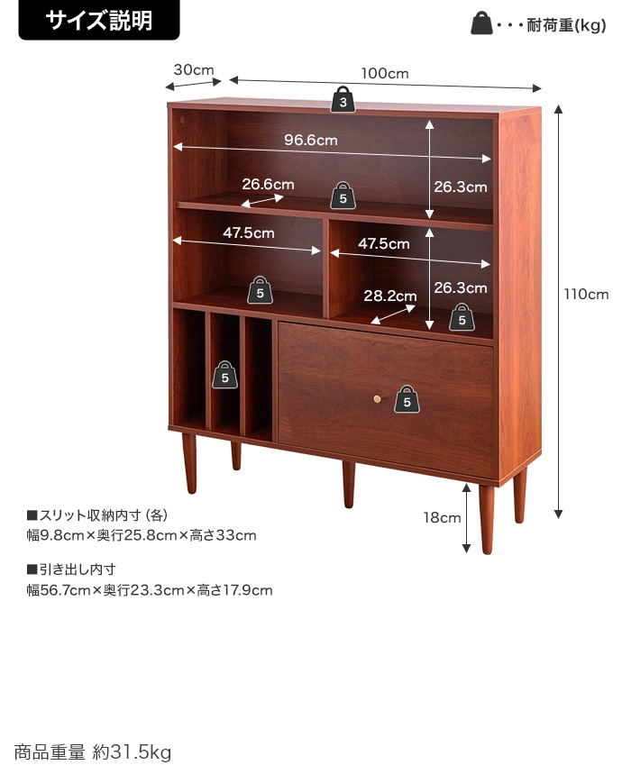 サイズ | 幅100cm×奥行30cm×高さ110cm |
